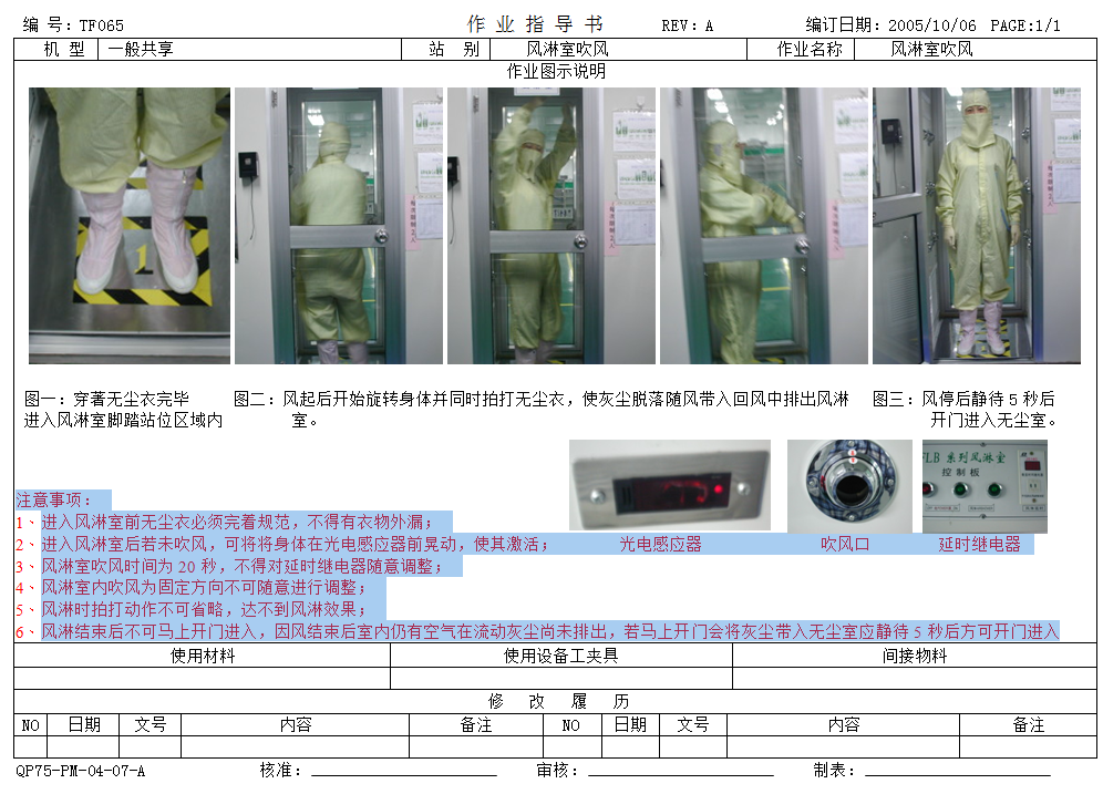 1、进入风淋室前无尘衣必须完着规范,不得有衣物外漏;